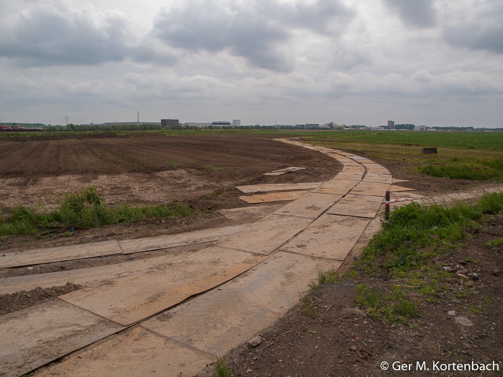 Er staat nog tarwe op het landRijplaten om grond af te voerenDe bovenste grondlaag wordt verwijderdDe vlonder staat nog droog, de dijk is nog in tactGeulen worden gegravenDe vlonder staat in het water, de dijk is doorgestoken Sophiapolder